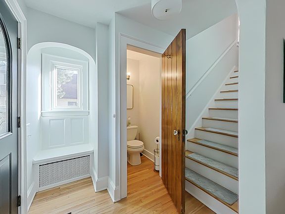 Discover timeless elegance in this four-bedroom, 2 1/2 bath home designed by renowned architect Harold Crawford. Boasting an abundance of charm and character, the residence features arched doorways, panel doors, crown molding, built-in bookcases, and window seats. Hardwood floors throughout add a touch of warmth, along with the heated slate tile floors in the kitchen and 4 season Sun room. The recently updated kitchen and bathrooms seamlessly blend modern convenience with classic design. Enjoy the energy efficiency of a new boiler but ease of central air conditioning. The property includes a fully fenced backyard that has been professionally landscaped along with new garage doors for the large two-car garage. Welcome home to a perfect blend of craftsmanship and modern amenities.