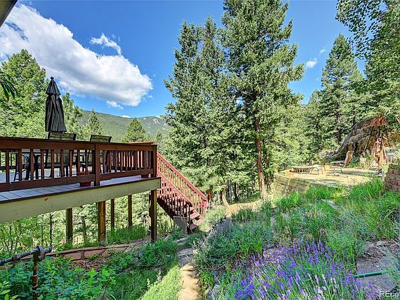 Welcome, the Rocky Mountain Lifestyle awaits you! Picture yourself sipping your morning coffee as the clouds float by. This home has one of the best views in Evergreen with beautiful rock outcroppings, aspen, ponderosa, and spruce trees. It's conveniently located near hiking, skiing (8 miles), dining, fishing, and other amenities. Perfect for anyone seeking mountain serenity in a friendly neighborhood setting, and still only a 35 minute drive to Denver. Beautiful & open chef's kitchen is a dream for entertaining. The oversized master suite is located on its own private level. Each of the four bedrooms has fantastic views and walk-in closets. There are four updated bathrooms, enough space for everyone in your family. The walkout basement could easily become a mother-in-law suite, or fantastic private guest space. Vaulted ceilings and wood floors throughout the main and upper level of the home provide a warm and open feeling. Enjoy the natural wood-burning fireplace in the living room, or it's also connected for gas should that be your preference. The basement has an additional pellet burning stove, perfect for cozy winter nights. In addition to the front and back decks, there is a private sun patio, great for s'mores and stargazing. Enjoy viewing abundant woodland wildlife from the comfort of your beautiful new home. Don't miss your chance to own this property!