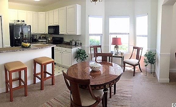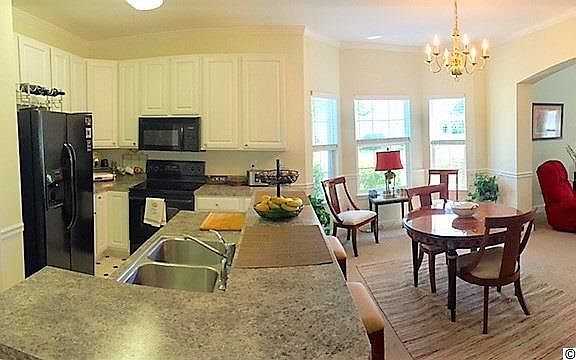 This one story townhouse with a one car garage is loaded with natural light and open floor space. The master bedroom has vaulted ceilings, a walk in closet, plus a second closet for extra storage, double sinks and a walk in shower. A large reading room is located off the master bedroom. This space is excellent for an extra lounge area or office space. The second bedroom is across the home with its own private bath. The property comes partially furnished so you can move right in. The living and kitchen areas also have vaulted ceilings, new carpet, new refrigerator, new garbage disposal, freshly painted, and a refurbished A/C unit. The garage floor has been acid washed, resealed and painted. It is located in Johns Bay at the highly popular Prince Creek. The gated community offers a residents only pool and recreation area along with access to the 10 acre amenities center which boasts two outdoor swimming pools, tennis, volley ball, and many family friendly activities. Johns Bay is minutes away from the area's only Tournament Players Club golf course. The end unit is located on a corner setting with a large yard. Come see it today! All measurements and square footage are approximate and not guaranteed. Buyer is responsible for verification.