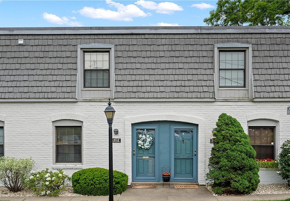 This well-maintained condo in Pennsbury Village is ready for its new owners! Modern and neutral throughout, this home offers 2 bedrooms and 1 full, tastefully updated bath. The main floor boasts an equipped kitchen with new hardware, a dining area that opens to a bright sunken living room with sliding glass doors to the deck. Beautiful hardwood floors flow throughout the living spaces. Enjoy your private back deck with a wooded backdrop and a storage shed functioning as a divider between units, adding privacy. HOA covers gas, water, sewage, all exterior maintenance, snow removal, and landscaping. This residence is close to everything that is shopping & dining as well as the airport. There's also a community pool (separate fee), hair salon, tennis courts, sports court, playground, and a restaurant within the condo community!