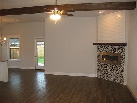 Stunning new construction wows you from the moment you drive up! This 4 bedroom 2 bath custom home offers incredible custom features to include granite counters throughout, gorgeous wood look tile, his and her closets, barn door and huge master bath! Gorgeous kitchen with custom cabinets, decorative lighting, wonderful tile back splash, glass front pantry as well as coat rack with bead board paneling off the utility for convenience and ease as you're heading out for your day! You'll flip over the detailed tile back splashes and tub and shower surrounds. Exceptional quality throughout and new home warranty!
