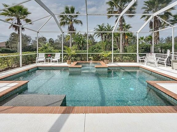 This is the one you have been waiting for! Beautiful 5BR/4 BA home with heated pool/spa on over a half acre in the charming neighborhood of Country Meadows. Step through the French entry glass doors where you will see gorgeous views of the heated pool/spa overlooking the meticulously manicured gardens filled with nature and beauty. Soaring ceilings and transom windows allow light and sunshine throughout. An entertainer's delight, this home features a Gourmet kitchen with granite countertops, breakfast bar, built in desk and adjoins the large Great room with soaring 20 ft ceilings. Spacious first floor MBR suite with dressing area, His/her closets & luxurious bath with garden tub and walk in shower. Formal living/dining room areas plus extra guest bedroom with BA downstairs, perfect for an office. 3 generously sized secondary bedrooms upstairs with 2 BA make this the perfect home for those seeking privacy & space. Seek peace & serenity outside in the English tea garden with sitting bench or stroll past the 3 tier waterfall & meander through the grounds where you will find clusters of Palms, Hawaiian Ti, succulents, Italian Cypress, ferns, Hollies, White Jasmine & more landscaped with manicured hedges completely around the house. Barbeque pit, garden beds and horseshoe pit lined with mature Oaks in the distance make this the ideal hobbyist gardeners dream come true. No CDD fees! Top A rated schools, paver driveways, tile roofs. Make this your home today!