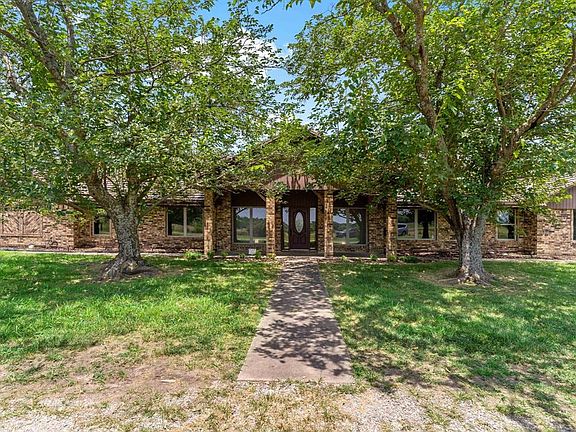 Come home to a stunning Texas ranch house in the tranquility of the country. Enter into the formal grand entry with a sense of elegance. Roomy grand room with cathedral ceilings is great for entertaining or a quiet romantic evening by the large stone fireplace. Large windows bring light and nature in. Game-media room and office with views. Large dining area can hold a long table fit for royalty. The bright open kitchen will please all of the chefs in the family with room to gather together. Don't forget to fill the wine refrigerator. Make the relaxing primary bedroom yours with almost any size and style of furniture. Primary bath includes his and her vanity, cedar closet, garden tub and separate shower. Guest rooms are large and include a Jack & Jill bath. Utility area has plenty of storage and built in ironing board. Large garage shop with plenty of space for those special projects.