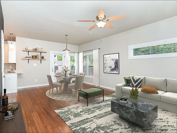 Move in ready! A downtown gem built in 2017 with 2 car parking spaces in the driveway. A sit-out balcony & backyard porch with fenced backyard to relax. This home lives large and gives you easy walkability to highly ranked schools, all the fun - shops, restaurants, breweries, museums, festive downtown parades and nightlife. Entire house is freshly painted with grey, open floor plan, all wood floors and a beautiful kitchen. Relax or entertain in the beautiful backyard with porch. A fenced backyard for your furry family member. The front porch welcomes your friends and family with off street additional parking. Sip morning coffee on the balcony. Renter pays for all utilities and maintains lawn. One year lease or more.
