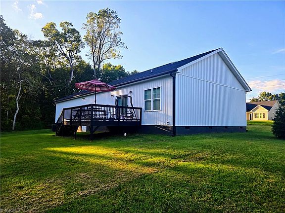 Single story living at its best with an amazing open floor plan. Stainless appliances, solid surface countertops and a large pantry are highlights of the beautiful kitchen. This home offers luxury vinyl plank flooriing and a split bedroom plan with a spacious primary closet. Do NOT miss the outdoor living space. Approximately 12x16 composite deck overlooks huge private backyard and the large rocking chair front porch is waiting for your special touch. Large oversized garage for your bigger vehicles and a gravel parking area for those that are extra large. Bonus: prewired for generator!