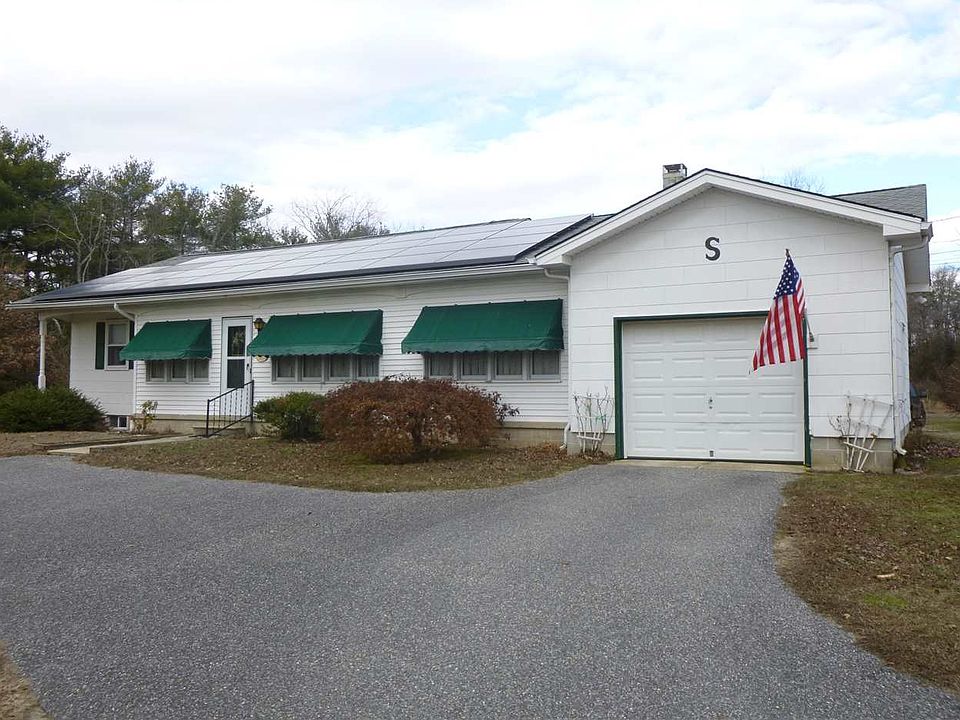 BACK ON THE MARKET! NEW SEPTIC FIELD! Situated on a 4.53 Acre flag lot offers you all privacy you wish. The stone and asphalt driveway lead you to this quaint rancher offering Living room having wood floor and dining area with the same, den with built-in shelving. Kitchen has laminate floor and coriean counter top. Full bath and two bedrooms each with wood floors.Rear door entrance has mud room so when you come in from the garden after you tended a wide variety of fruit trees which includes strawberries, blueberries,asparagus,seedless grapes, blackberries,peach trees,asian pears and beach plums, Full basement with inside and outside entrance. Well 2 yr. old and water heater 1 yr. old. Solar panels and irregation well
