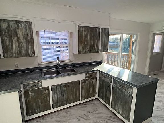 the Crisp County Pre-k School neighborhood, this brick home is awaiting new owners. Plenty of natural light throughout the home, beginning in the livingroom with the large picture window. The kitchen's dining area opens to a covered deck and fenced back yard. Master bedroom's 2-piece bath opens to laundry room. Laundry has access from both master and kitchen. Carport and storage area attached. Wood storage building in the back yard. Paved drive from the alley and back yard is fenced in. Recent updates to both the kitchen and baths. Large closets in all the bedrooms. Outside of the home is equipped with security cameras. This house is ready to move in.