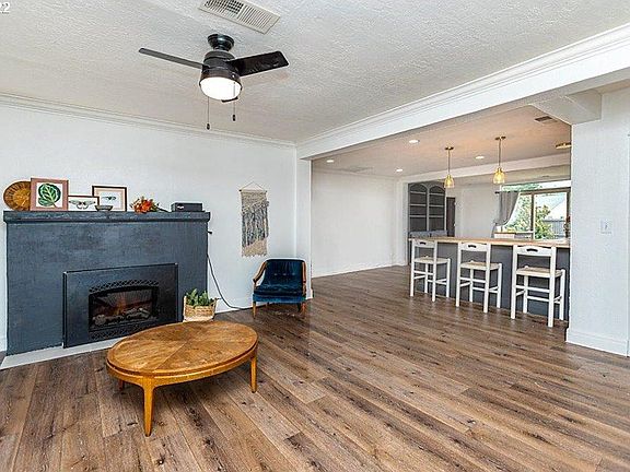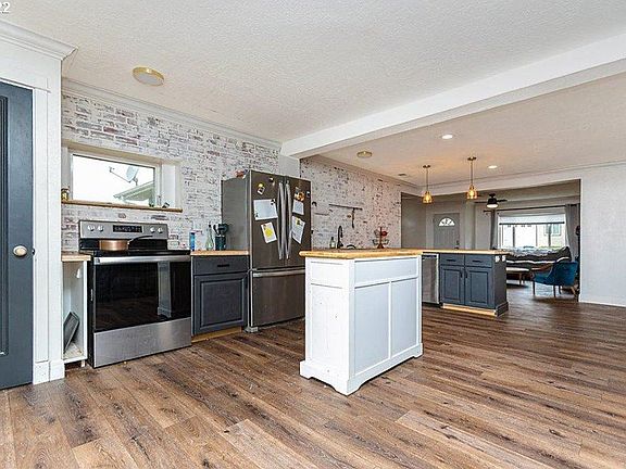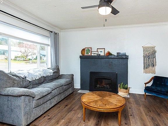 Cute 3 bed/2 bath at end of street right in Sutherlin. Inside this home you will find vinyl plank flooring, maple butcher block kitchen counters, kitchen pantry, laundry room with basin sink, and more. Enjoy coffee at the breakfast bar or soak in the sun out in the backyard. Master bedroom w/bathroom, walk-in closet, and bay window. Garage has a workbench and plenty of storage. Nice back yard with shed. Kitchen appliances included. Fireplace decorative only.