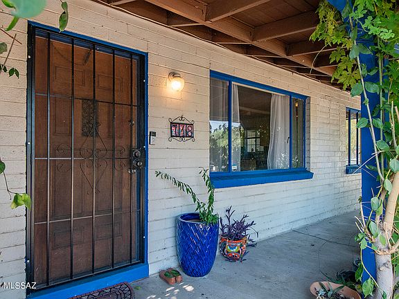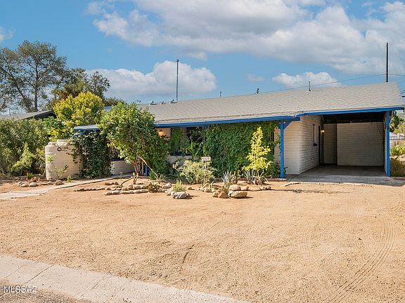 Welcome to this charming 1950's ranch home nestled in Campus Farm + central Tucson. This 3 bedroom, 2 bath home has been upgraded with efficiency & sustainability in mind. New interior paint throughout and kitchen refresh maintains the historic & desirable vintage metal cabinets. Outside, the front yard welcomes you with mature landscaping that adds character & curb appeal. Financed solar panels allow you to harness the power of the sun while minimizing your energy costs. Rainwater cisterns have been installed in both the front and backyards. Landscaping is low-water and native, aiding in water conservation. The backyard offers ample space for your desired outdoor activities, whether it's raising chickens, cultivating a garden, or enjoying meals with family and friends. Additional updates include a new 14 SEER HVAC system for efficient cooling and heating, as well as recent roof updates. Conveniently located this home is close to the University of Arizona and Downtown along with plenty of shopping and dining nearby. With a bike score of 95 you can easily accomplish your daily tasks car free. Don't miss your opportunity on this thoughtfully updated & environmentally conscious home.
