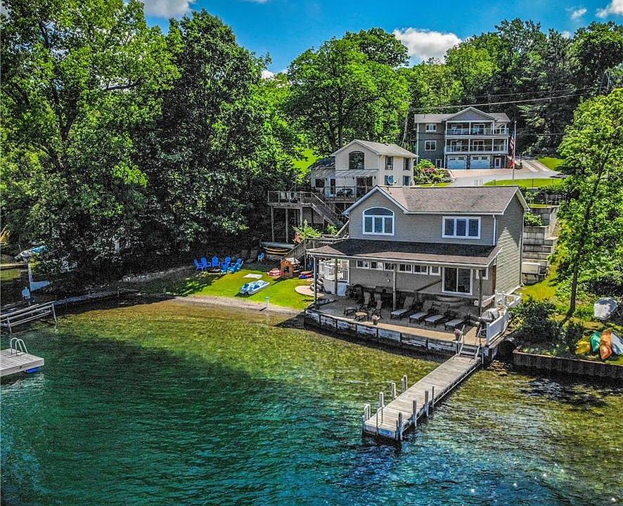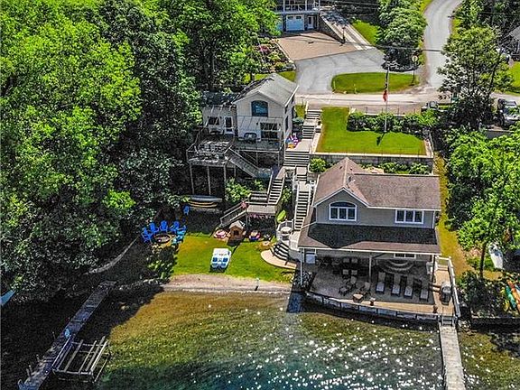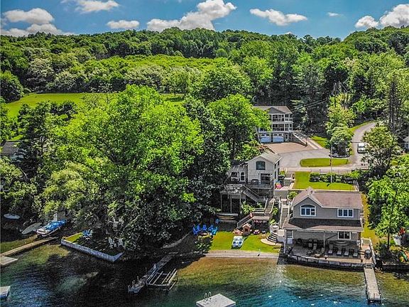 Keuka Lake-Family Compound, or investment property, or BOTH! 107' of lake frontage, and a 1+ acre settings, with three independent homes/cottages. A 3000+ sq. ft., 2012 constructed, contemporary home, with zoned heat & AC (including garage & workshop/rec area), 2-kitchens, hardwood floors, elevated ceilings, double decks (composite), generator, granite tops, and open floor plan. Couple this with 2 (totally renovated) guest/rental cottages on the water. The total finished area is 5000+ sq. ft., 8+ bedrooms, 5 & 1/2 baths. Guest cottages (rentals) are fully furnished. A state-of-the-art engineered septic system serves all three units. This is an opportunity rarely (if ever) even imagined!!
