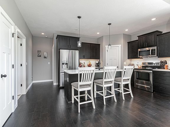 Better than NEW! This Trickel Home hasn't even celebrated her 1st birthday yet and now she can be YOURS! You are going to have hearts in your eyes the second you pull up! The curb appeal is a solid 100 from the brick and stone front, to the slate blue/gray siding and the wide flat driveway! Open the front door and fall in love with the open concept floor plan in the hottest color palette with Quartz countertops throughout! You have 4 GREAT sized bedrooms, complete with a true split floor plan. The master bedroom is a true oasis, with a fantastic soaker tub, separate shower, dual vanities, and don't miss the pocket doors!! Add in the 3 car garage, 95% HVAC, fully irrigated yard, and buried gutters and you truly have a dream home in a fabulous neighborhood with a community pool!