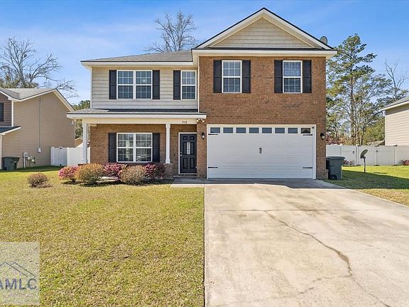 Located on a cul-de-sac in The Preserve at Cinder Hill, 718 Eden Lane in Hinesville offers 2,765 sq. ft. of living space with 5 bedrooms and 2.5 baths, just minutes from shopping, dining, and Ft. Stewart. The open floor plan connects the living room, family room, dining area, and kitchen. The main floor features laminate flooring in the living areas and ceramic tile in the kitchen, which includes a wood-trimmed breakfast bar, granite countertops, and stainless steel appliances. A separate laundry room and powder room complete the main level. Upstairs, the primary suite includes an ensuite bath with double vanities, a soaking tub, and a stand-up shower. Four additional bedrooms, all carpeted, provide ample space. A screened-in porch overlooks the private, white vinyl-fenced backyard. A two-car garage completes the home. Schedule your showing today!