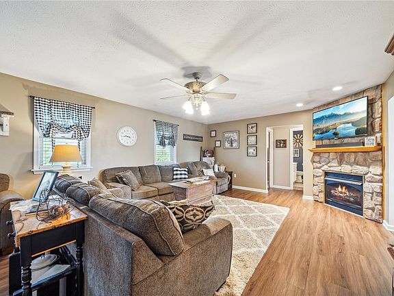 Welcome to your own slice of country paradise in Redstone Township! This beautifully maintained single-family ranch home sits on over 6 acres of serene land, offering stunning views from both the front porch and back deck. This ranch-style 3 bedroom, 2 bath home combines the charm of country living with modern amenities and natural beauty while providing comfort and convenience to you. The spacious living room offers the cozy ambiance of the gas fireplace, perfect for relaxing evenings. A fully equipped kitchen with island is open to the dining area with doors leading to the back deck to enjoy the views and is a perfect spot for entertaining. The finished basement includes a kitchenette for entertaining and flexible living space with an additional 2 rooms and large storage area. Don't forget the 2 car integral garage and FREE gas for heating of the home, adding an extra layer of cost-efficiency to your home. Don’t miss the opportunity to make this tranquil retreat your forever home!