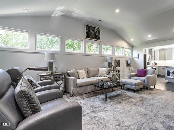 A stunning transformation of a mid-century one-story home dazzling with natural light and amazing details, clean lines showcasing a mix of neutral colors, hardwood floors, and stonework, nestled in a private setting with close proximity to the sought after Village District for essential shopping and a vibrant restaurant scene. This home offers modern conveniences with chic finishes throughout, reflective of today's lifestyle while blending charm and every amenity possible, focused on modern simplicity and functionality. The open layout features: spacious living areas; a striking fireplace piped for gas with oversized surround and mantle as focal point; updated kitchen with modern appliances, sleek cabinetry, marble countertops, center island; all bedrooms en-suite with two possible as owners' suites with extraordinarily detailed & expansive bath areas with classic tile work, zero entry showers, modernist fixtures; convenient office; and abundant storage on lower level and in detached shed. Enjoy the ease of single-level living, complemented by private outdoor private spaces including stone gardens, patio, and multiple gathering spaces along mature landscaping. All perfect for entertaining or relaxing, showcasing the indoor-outdoor lifestyle that mid-century champions. Situated in a location second to none and easily accessible to: restaurants, shopping, groceries, schools, downtown Raleigh, RDU, RTP and Fletcher Park where one can enjoy summer concerts and beautiful walkways for private moments in the out-of-doors. This home is a must-see for updated carefree living and perfect blend of style, comfort, and timeless appeal.