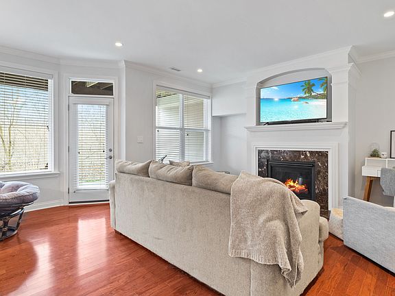 Location, Location, Location!!! Luxury 3-bedroom townhome steps from the Monon Trail. RARE opportunity to live in desired Village Green. Direct Monon access from the community with a 5 minute walk into Downtown Carmel with multiple Restaurants, Shops, Community Events plus Art & Design District. Immaculate home with gourmet kitchen, stainless appliances, granite countertops, custom cabinets, granite island and eating area. Natural sunlight floods into home! Living room and dining room offers a nice open concept with access to large outdoor deck overlooking creek and wooded natural preserve. Flex room located on the main floor which is great for an office or workout space. Neutral paint colors and beautiful hardwood throughout entire home. Spacious primary bedroom with bay window, large bathroom with dual sinks, granite countertops and walk-in closet. Lower level living area with fireplace, half bath and outdoor access to back patio. Total privacy with heavily wooded backyard! This is a must see!