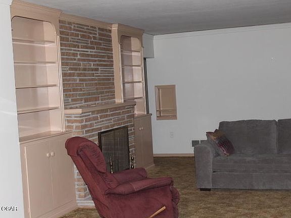 Large mostly level lot both in front and rear of home. Sand stone house with 2 car garage and carport that could be used as a patio. Large bedrooms, lots of storage, mature trees.
