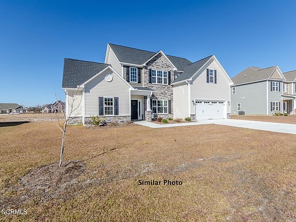Welcome to the highly desired and popular community of Onslow Bay. Brand new construction built by Onslow County's most trusted and preferred builder, featured in Builder 100/ Top 200 Builders in the country. Onslow Bay is a hot spot, 3 miles to MCB Camp Lejeune's Piney Green gate, 14 miles to New River Air Station and minutes to area schools, shopping and dining. This beautiful neighborhood is sure to impress, complete with a clubhouse area and community pool. Welcome to the Berkley. 2920 heated square feet, 5 bedrooms 3.5 bath. Main level master bedroom. A covered porch leads into a 2-story foyer with natural lighting. A formal dining room is off of the foyer. This very open floor plan is great for entertaining. Open kitchen 10 x 14, breakfast room, and family room. Kitchen features lots of cabinets, a center island and a pantry. Stainless appliances include a smooth top range, dishwasher and microwave. The open family room features a ceiling fan and a fireplace topped with a custom mantle. The main level master suite also has a ceiling fan and a deluxe master bath with walk in closet. The master bath has a separate tub and shower, a double vanity with custom mirror and a grand walk-in closet. 4 spacious bedrooms on the second floor, one having a charming sitting area. 2 full bathrooms upstairs with an additional half bath on the main level. The Berkley is a must-see floor plan complete with a 2-car garage. NOTE: Floor plan renderings are similar & solely representational. Measurements, elevations & specs may vary in final construction. All selections have been ordered, limited selections for buyer to choose. Call L/A to verify. Introducing the Berkley floor plan which boasts with 5 bedrooms and 3.5 bathrooms at approximately 2920 heated square feet. The outside comes equipped with easy to maintain vinyl siding, accented by stone or brick, with a sodded front yard. Welcome your guests into your home in your two story foyer. The formal dining room is the perfect place to gather for special events and family meals. The chef in the family is sure to fall in love with the kitchen. Flat panel staggered cabinets, large pantry, an island for food preparation and a stainless steel appliance package to include the dishwasher, microwave hood, and smooth top range. Enjoy your morning cup of joe in the open breakfast nook. Movie nights made simple in the large family room. Complete with ceiling fan and electric fireplace surrounded by marble and topped with a custom mantle. Convenient first floor master suite allows for privacy and relaxation. The master suite features a trey ceiling, ceiling fan, and master bathroom. The master bathroom includes a double vanity with cultured marble counters and custom mirror, water closet, separate shower and soaking tub. Follow through the master bathroom to the ENORMOUS master walk-in closet. Upstairs you will find the remaining 4 bedrooms and 2 bathrooms, all perfectly sized and pre-wired for ceiling fans. Bedroom 5 features a sitting area. Wander outside to your covered back patio, the perfect place to gather for BBQ's or those warm Carolina evenings. Two car garage. All backed by a one-year builder warranty, from a top local builder. NOTE: Floor plan renderings are similar and solely representational. Measurements, elevations, and design features among other things, may vary in the final construction. Call to verify. Buyer to verify schools. Welcome Home.