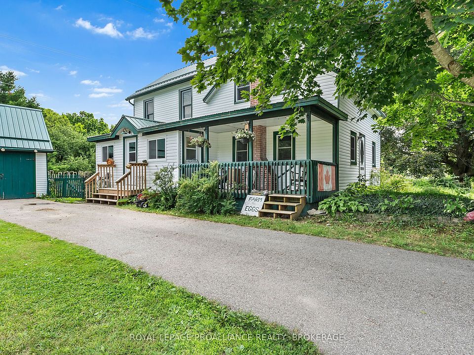 Charming Century Home on 3 Acres with Exceptional Features! Step into the timeless beauty of this charming 1.5-storey Hobby Farm, offering 3 bedrooms, 2 bathrooms, and set on 3 picturesque acres. Built in 1870 with an addition in 1910, this home blends historic character with modern updates. Enclosed porch adds additional storage option. The property is complete with outstanding outbuildings, lush gardens, apple trees, and expansive pastures. A well-equipped barn with stalls, a paddock, and a tack room provide ample space for animals and storage. The home has been thoughtfully updated, featuring a new kitchen in 2018, two full bathrooms (one on each floor), and a cozy Vermont Castings woodstove with a new chimney installed in 2019. Many of the windows have been replaced, allowing for abundant natural light throughout. The main floor also includes a convenient laundry room. The exterior is low maintenance with vinyl siding and a durable metal roof. Enjoy the outdoors with lovely porches, a deck, a stone patio, and a large driveway. The garage offers plenty of storage space. A newer outbuilding, built in 2006 with a metal roof, is perfect for use as a workshop, additional storage. The entire property is fully fenced, with mature woods at the rear, providing both privacy and beauty. The gardens are brimming with perennials, and theres plenty of room to grow your own vegetables. We look forward to welcoming you home!