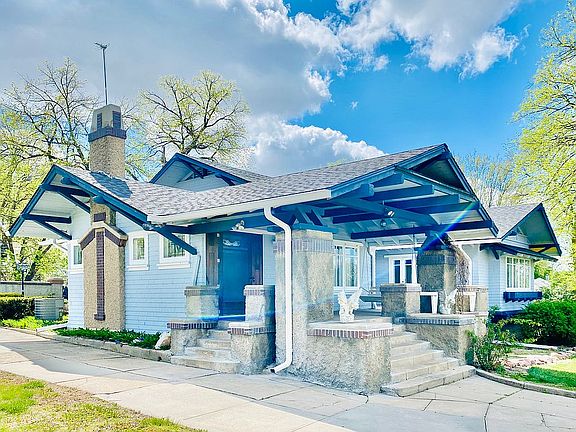 Gorgeous Frank Lloyd Wright inspired home sitting on .69 acres features original wood trim, exposed beams, wonderful built ins, french doors, stained glass, & beautiful Steuben light fixtures throughout. Open kitchen & dining room combo has been completely remodeled and opens to the deck that overlooks the spacious & private backyard. 2 large bedrooms, formal dining room, warm & inviting living room w/unbelievable fireplace and spacious full bathroom w/double sinks all on the expansive main level. 2 More big bedrooms upstairs w/awesome walk-in closets! Partially finished basement offers an abundance of addt'l storage, workshop, & a possible game room with Brunswick Snooker table, full bath & another that could be an additional bedroom complete w/egress windows! New roof! So much beauty and potential here! This unique home is a must see.