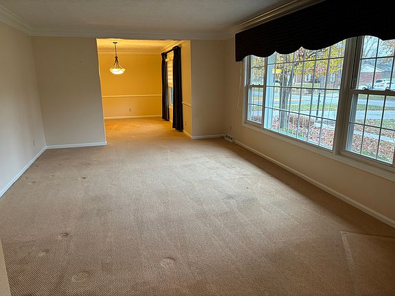 Lovely custom built one owner home nestled in Carefree Addition. Brick ranch with spacious 3 bedrooms, 2.5 baths. Inviting foyer w/ marble flooring opens to entertainment sized living and dining areas with crown molding & great outdoor views. Well designed convenient eat-in kitchen with cherry cabinets, all appliances, ceramic floors, and pantry. Family room with built-in bookcase and cozy brick fireplace. Primary bedroom with 2 closets, and private bath. Hall bath with arched enclosure over tiled tub/shower. Utility room with washer, dryer and half bath. Large basement has over 1400 sf to finish to your needs and taste. Back yard with mature trees and large patio is a tranquil place to enjoy the outdoors.