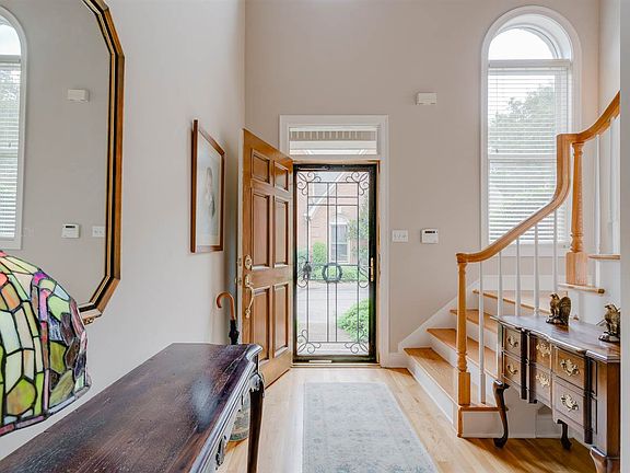Hard to find detached brick zero lot in super convenient location off White Station near Poplar! Downstairs Master BR and spacious luxury bath w/double vanities, tub & shower...and 2 closets! Open Family room w/gas log FP,sep. DR, large Kitchen & breakfast rm. Upstairs are 2 bedrooms, a bath and big xpandeable area that makes a great walk in attic! High ceilings, lots of great light through the multitude of windows. Very low maintencne house and very small yard makes for easy living.Alarm system