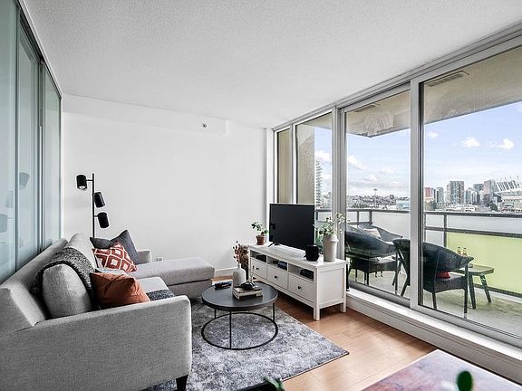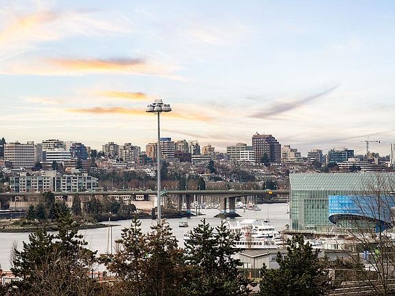 City Views! This modern 1 bdrm home is at the border of Strathcona & historic Chinatown- mins to DT by bike or car. The west facing outlook provides excellent light & stunning summer sunset vistas. Impressive city lights make the views as enjoyable by night as they are by day. The kitchen feat. high-end finishings such as AEG gas cooktop, Fisher & Paykal DW, quartz countertops, sleek white backsplash & easy-lift cabinetry. Relax in the deep soaker tub & enjoy the generous bath w/ clean, modern design incl. high-gloss white cabinetry & x-wide vanity. The covered balcony is perfect for enjoying year-round & makes entertaining easy both inside & out. Ginger is rental & AirBnB friendly making it an incredible investment w/ the NE False Creek OCP & the new St Paul's hospital just blocks away.