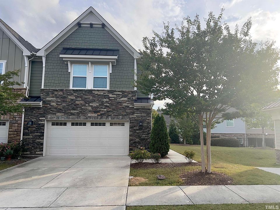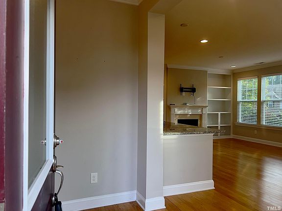 END UNIT townhome in PRIME location! This Beautiful luxury town home with 3 BD/2.5BA features engineered hardwood floors on main level, family room with built-in shelves, fireplace, well-equipped kitchen with granite countertops, tile backsplash, large pantry and tall cabinets. Second floor boasts of a laundry room, 2 good size secondary bedrooms with a shared bath and huge primary bedroom with tray ceiling, two walk-in closets, luxury bathroom w/garden tub, a walk in shower and dual sinks. Walking distance to top rated Wake county schools! Mins to shopping, major employers in RTP and major highways.