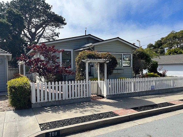 Step back in time and discover the charm of this meticulously maintained 1916 historic home in Pacific Grove. From the moment you enter the sunlit porch, you'll feel the warmth and care that has preserved its original character. This delightful two-bedroom, two-bathroom residence boasts original hardwood floors, complemented by classic 5-panel doors and elegant glass door handles. The home's timeless appeal is seamlessly blended with modern conveniences. Enjoy the beauty of drought-resistant, easy-to-maintain landscaping. Beyond the main house, you'll find a detached finished garage and a versatile detached office/guest room, offering flexibility for your lifestyle. The walk-in basement provides an additional 150 sq. ft. of valuable storage space. Unbeatable walkable location nestled on a wide street with ample parking and surrounded by friendly neighbors, this home offers an incredibly convenient location. Enjoy easy strolls to: Robert Down School (0.4 miles) Pacific Grove Middle School (0.4 miles) Downtown Pacific Grove (0.5 miles) Monterey Bay Aquarium (0.9 miles) Lovers Point Park (1.2 miles) Will Consider small pets Owner pays for sewer and landscaping. Renter pays for water, electricity, and waste removal.
