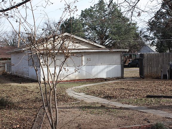 Large 2 bed 2 bath Brick home located close to Grade School. Home features 2 living areas, wood burning fireplace, modern kitchen, large utility room with storage, large closets, storage, single car carport attached, large detached single garage/shop w/carport rear alley access, Central Heat/AC, extra insulation in attic, front circle drive, covered patio Motivated Seller Call (580)335-2465 Schedule a showing today