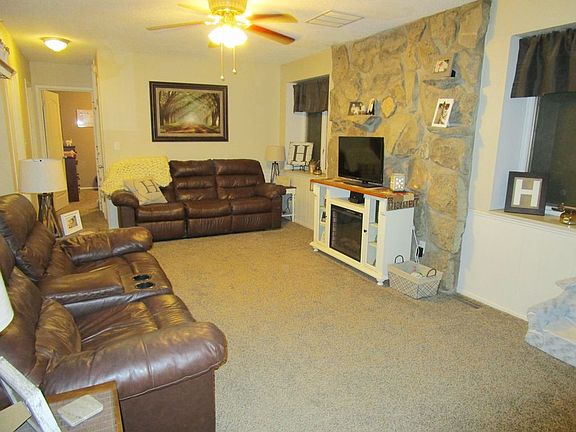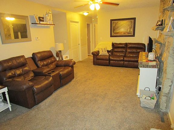 Your gonna love this move in ready ranch home with 2 bedrooms and 2 full baths. This home has been well cared for and maintained with many updates. Neutral paint colors and white kitchen cabinets and trim make this home perfect for any decor. Living room has rock feature wall and plenty of space to entertain. Kitchen has ample storage and space for cooking. Abundance of storage space in this home with many large closets and cabinets. Basement has family room with brick accent wall, built in desk and storage area, wet bar, full bath and a non conforming room as well. This home has a beautiful enclosed patio, concrete patio area and storage shed/playhouse. A covered front porch, fenced yard and 1 car garage complete this home. Schedule your private showing soon....this home wont last!
