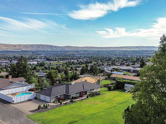 This daylight basement home is tucked back off of Scenic Drive, and enjoys a view of Mt. Adams. It's a quiet, cul-de-sac location, just minutes from the Chalet shopping center, or Fred Meyer. Impeccably cared for and updated over the years... this is a home fit for both first class entertaining and casual everyday living. Great room style kitchen/ dining/family room with wet bar and gas fireplace, an open den, and a formal dining room. It features two ensuite bedrooms on the main level, and two guest rooms downstairs where you'll find a large family room with wet bar, gas fireplace and a corner solarium that takes advantage of the southwest sun.The covered view deck is plumbed for gas bbq and connects to the pool area. Upgraded paver pool deck and driveway.