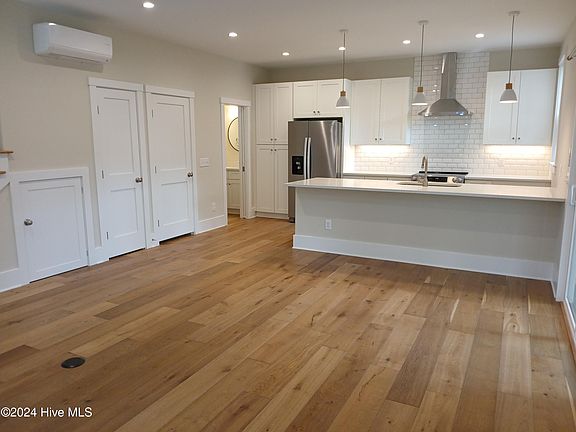 This beautifully crafted new build is tucked away on North 7th Street overlooking the Wilmington Bike Trail. Step from the covered, rocking-chair porch into a bright, spacious, open-plan first level. The kitchen is equipped with a 5-burner range and oven, a dishwasher, fridge and microwave. A stainless range hood and white, subway tiled backsplash are details rarely found in a rental property. Sliding doors off the living area open onto a screened porch with great views across the Trail. To complete the first floor, there is a full sized washer and dryer and a half-bath. Head upstairs to two bedrooms, each with their own full baths. Outside, there's off-street parking, a small backyard and the peace of being on a quiet street in the Brooklyn Arts District.