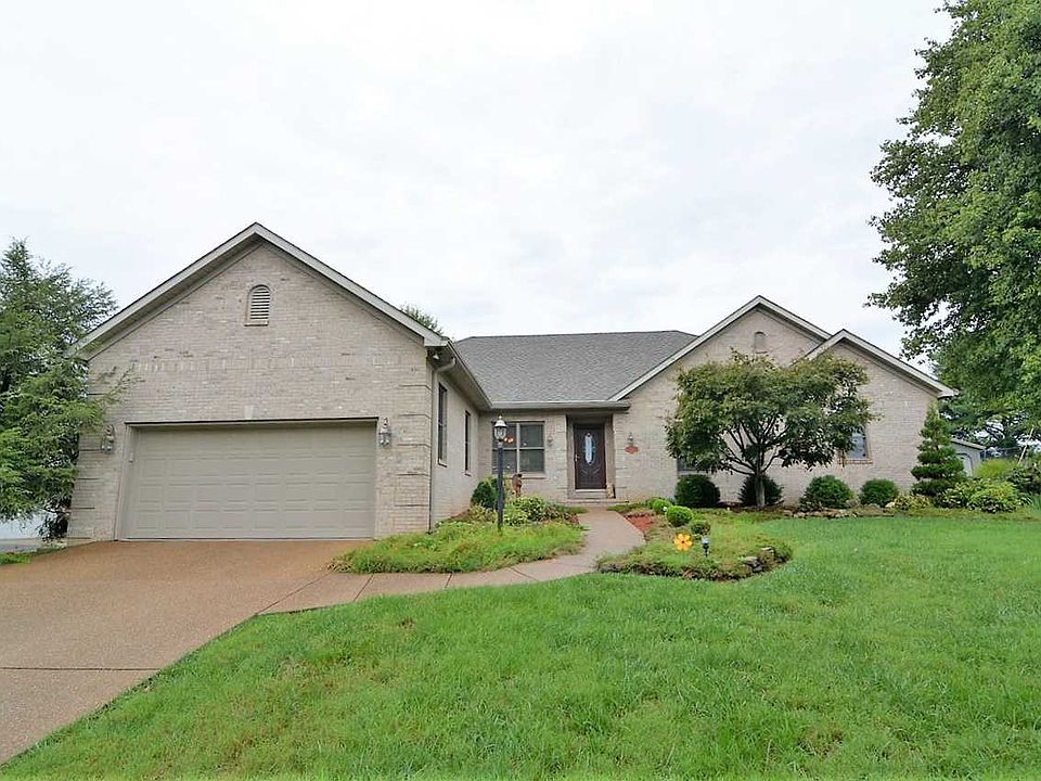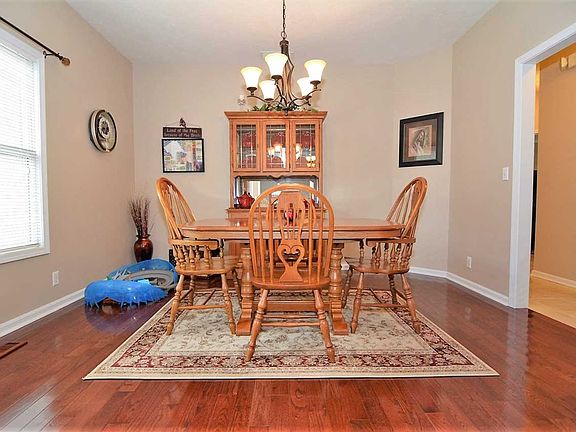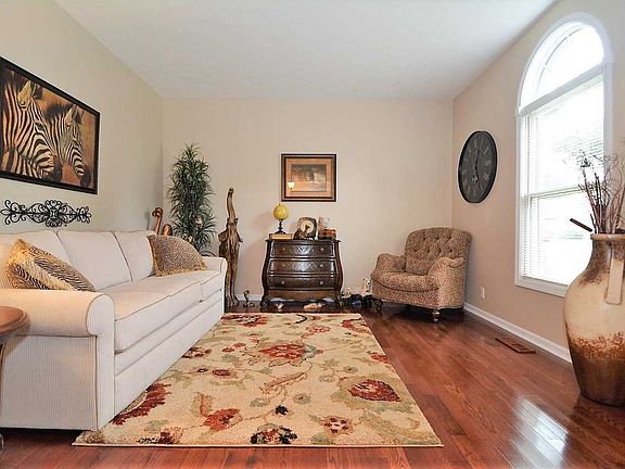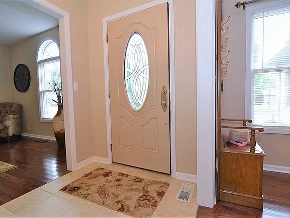 This home is simply stunning! A ceramic-tiled, foyer entry welcomes you in this lovely home. To the right and left, the formal living room and dining room, respectively, offer gorgeous, hardwood flooring. The great room has a grand feel with Cathedral ceilings and two skylights, which allow in lots of natural light. Custom-built, hickory cabinets and black granite counter tops are just the start of the amazing kitchen, which is sure to please! The tile backsplash, included stainless steel appliances, and breakfast nook with large window make this room a major draw! The split bedroom floor plan has an owner's suite, which is a wing unto itself. There are two, large walk in closets and a full bath that you have to see to believe. Separate vanities with granite tops, and a garden with separate shower offer a spa-like experience at home. The other bedrooms both offer good size closets, and the second full bath is sure to impress with the vaulted ceiling with skylight! Just off the great room, there is a large sun room overlooking an aggregate patio and the open fields behind the home. Located on a 0.68 acre lot, this home has plenty of yard space with a detached building, perfect for storage.