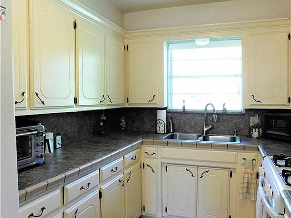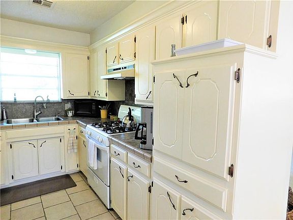 Oh gosh..... Home is so immaculate! It is move in ready - This cozy home has 1290 square feet with light interior designer colors .... and so squeaky clean. Property is situated among large ageless mature trees and flower gardens. A very adaptable floor plan, much opportunity exists to add personalization of space throughout. Home offers a very large living area with loads of natural light. The galley style kitchen is hosted with tons of cabinetry and counter space. All of the ceramic tile was completed by a master tile layer. The attached garage was converted into a huge walk-in pantry with built in shelving, inside utility room and a full bathroom. The master has a ceiling fan and a walk-in closet. The guest bedrooms share the hall bath. A cozy outdoor living space courtyard out back has ceramic tile patio and a garden shed. The detached garage is huge, has a large overhead door w/ opener, concrete floor and electric.