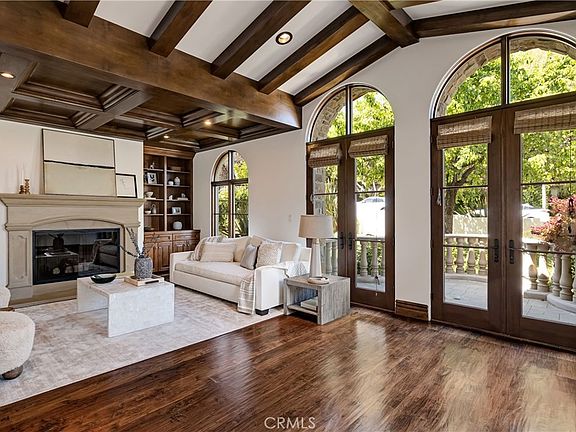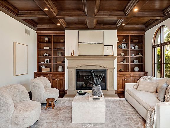 From the moment you enter, rich architectural details set the tone soaring ceilings, alder wood coffered accents, and a limestone fireplace anchor the formal living room. The chef's kitchen features Viking appliances, custom cabinetry, and beveled granite countertops, opening to a sunny breakfast nook and expansive family room.