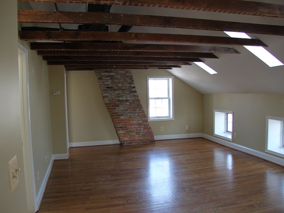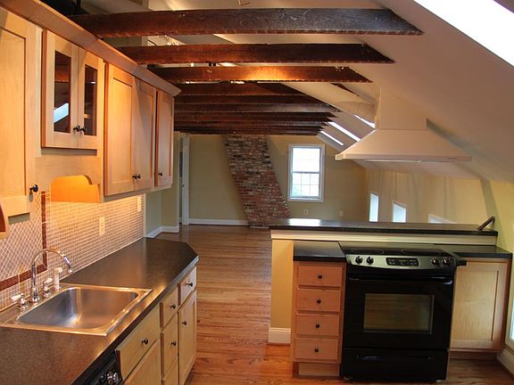 Enjoy the views and privacy in this unique 1 bedroom top floor apartment. There are exposed wood beams reclaimed from old ships, sky lights in the living room and bathroom and hardwood floors throughout. Lounge, grill and eat on your large private deck among the tree tops on this third floor apartment. The apartment includes custom cabinetry, an electric stove, garbage disposal, under counter lighting, dishwasher and washer and dryer within the unit. Plenty of street parking, only one block away from the marina and Chesapeake Bay, small park and walking trail. This is a must see apartment. Owner pays for trash removal and sewer and water. Tenant is responsible for gas and electric.