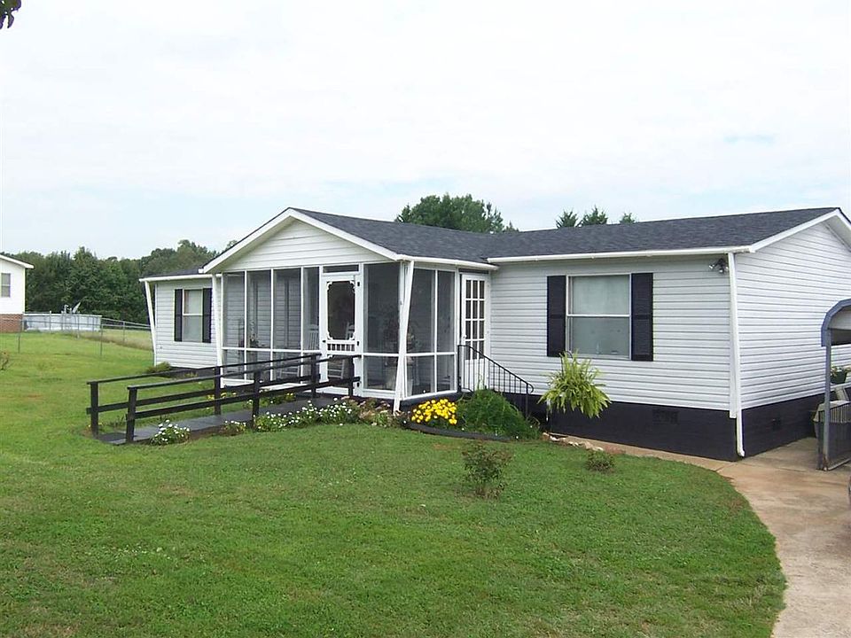 3 bedroom 2 bath double wide mobile home in country setting. Home has screened front porch and a rear deck. Entire lot is fenced in. Detached double carport has utility room. Storage building in back yard.