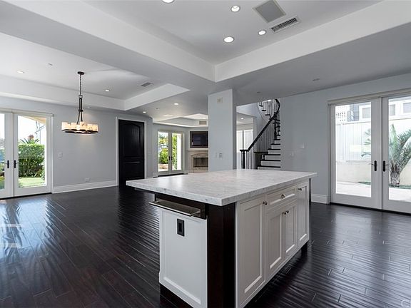 Turn-key Front Home on a 45 FOOT WIDE LOT! Built new in 2009 W/ a timeless California Beach meets Santa Barbara aesthetic, this home features a gourmet kitchen with a compliment of professional level stainless steel appliances, LARGE living spaces, oversized bedrooms including one on the main level, and spacious outdoor areas on the first and roof levels. Rich deep toned wood floors beautifully contrast the custom white cabinetry and Carrera marble countertops utilized in the kitchen. Rich Zebra Wood is tastefully used for sensational accent cabinetry on the main level in the Media room, display hall, and AV equipment cabinet. Gorgeous master bedroom has vaulted ceilings, a cozy fireplace, a HUGE walk-in closet, and French doors to a balcony where the ocean is clearly visible. Spectacular Master Bath with separate tub and shower, and dual vanities. Two additional bedrooms with a large "Jack & Jill" bath, and a large laundry room, complete the upstairs level. Even has an Ocean View/ Hills View / Fashion Island View roof top deck. Plenty of room to lounge and enjoy the sights in complete privacy. Central Air, Elfa Design closet organization, surround sound security DVR Camera system, Flat screen tv's, some furnishings, all included. Huge front patio with custom putting green! A luxurious lease, with all the amenities demanded by those seeking a home, not just a rental.