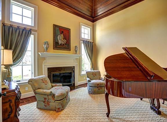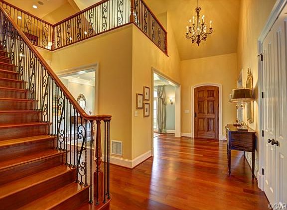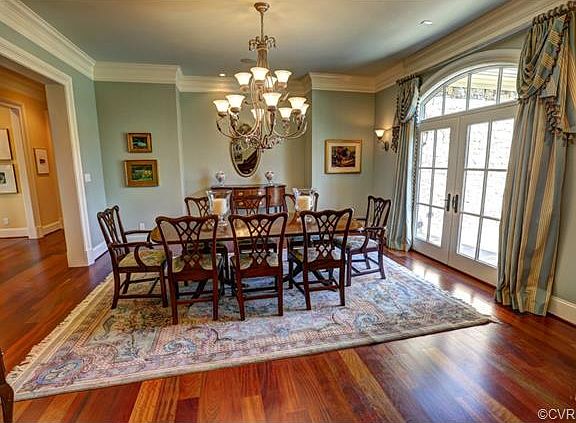 Lakefront with gorgeous salt water pool in Kinloch! Spectacular French Country with natural stone and shingle siding by J. W. Montague, Jr. Inc. Panoramic lake views are afforded by the open interiors with 10âEUR(tm) ceilings, Pella architectural windows, wide Brazilian cherry floors, and furniture quality custom cabinetry. The living room has a 15âEUR(tm)9âEUR paneled cherry tray ceiling and a granite surround gas fireplace with carved mantle. The dining room has French doors that open to the front terrace. The family room has French doors to the bluestone balcony overlooking the lake and a handsome cast stone fireplace and mantel. The gourmet chefâEUR(tm)s kitchen has furniture quality glazed cabinetry, an expansive center island with lacquered cherry top, Thermador dual fuel range and hood, Sub-Zero refrigerator/freezer and wall oven, microwave and warming drawer. The morning room has a bay window with lake views. The first floor ownerâEUR(tm)s suite is spacious with a large bay window with lake views. Two well-appointed bathrooms share a Roman shower. The terrace levelâEUR(tm)s great room has a travertine marble floor, stone fireplace, and a well-equipped kitchen with wine refrigerator.
