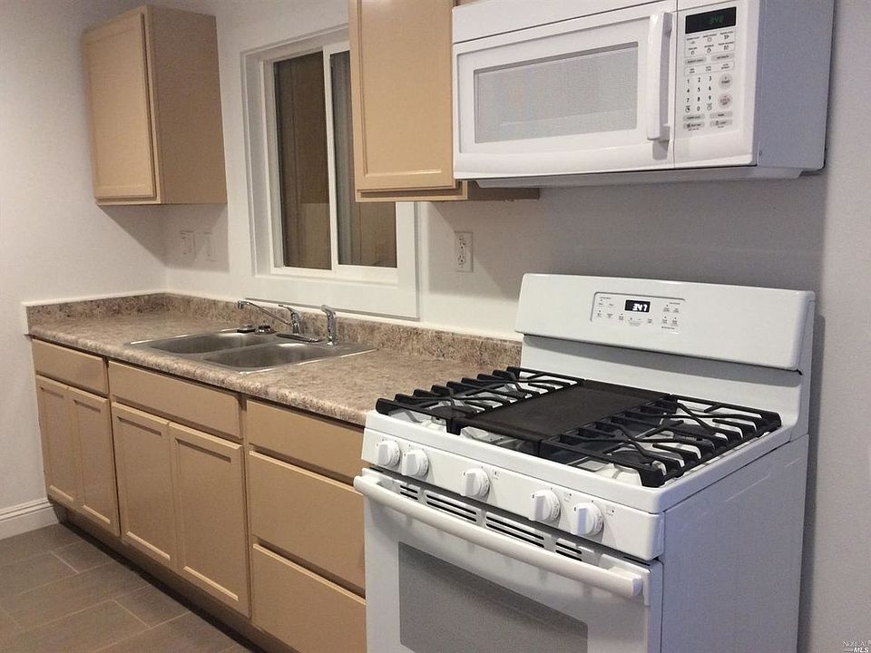 Cute single level Casita, remodeled one bedroom one bath home. Kitchen offers a gas range, microwave and refrigerator included. Custom tile work in bathroom. Laminate flooring throughout. Single level with an attached two car garage. Laundry hook up available. Home exterior will be repainted by winter.Low maintenance front and back yard.