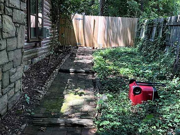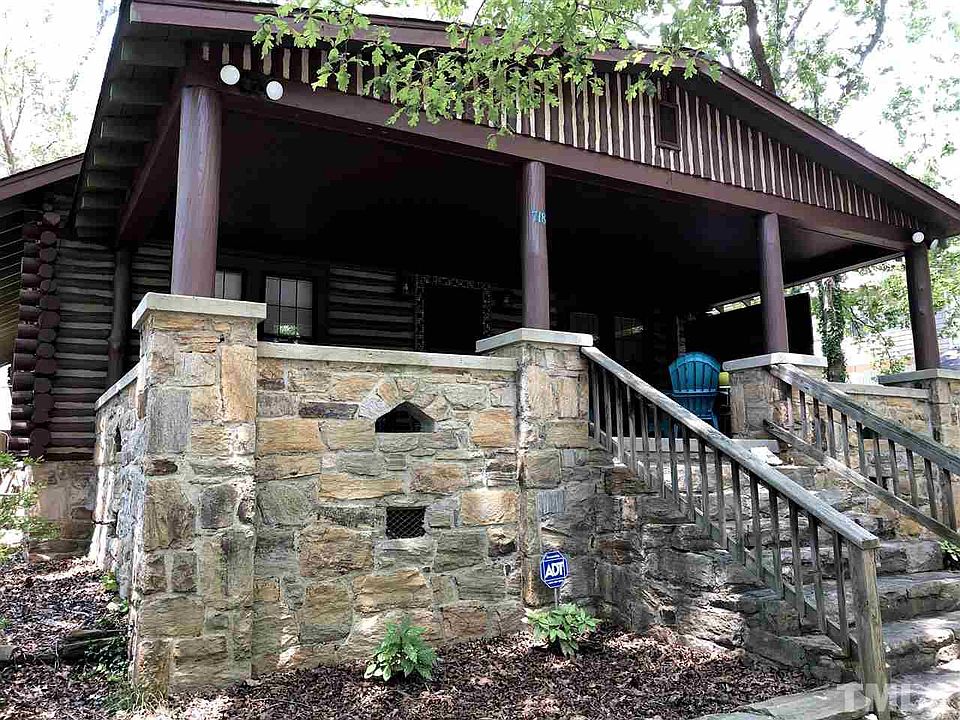 Historic log cabin home just outside of the beltline. Wooded lot with large parking in front, massive front porch, and private back yard with patio and fire pit. 4 Bedroom 2 Bath house, lightly renovated in 2009, including refinished floors upstairs and down, refinished downstairs bath with slate floor and twin sinks, and expanded living room. A true mountain retreat near the heart of the city.