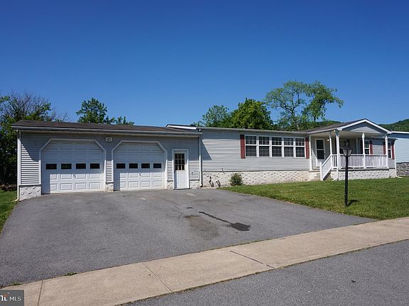True One Level Living located off the beaten path within Spring Township just outside of the Borough on a peaceful cul-de-sac at the edge of town. This manufactured one-owner ranch delivers a great split floorplan & vaulted ceilings throughout. The spacious eat-in kitchen comes complete with an oversized work island with a handy double sink, plenty of cabinets for storage, countertop space for meal prep, a wall of windows, included appliances & a delightful dining area. Off of the kitchen you will find a convenient laundry/mudroom that leads to the oversized 2-car garage. There is a large living room with a cozy corner stone fireplace. The primary suite features a super-sized walk-in closet, private full bathroom with a dual vanity, corner jetted tub & separate walk-in shower. On the other side of the house you’ll find 2 additional bedrooms & another full bathroom. There is a full unfinished basement providing plenty of storage or could easily be finished for additional/future living space. Additional amenities include oil forced air heat, central air conditioning & a nice level lot near the Bellefonte Little League fields. Not too far, but “quiet” close to downtown Historic Bellefonte, Bellefonte Elementary School, some great local shops, some of the area’s best hometown eateries, distilleries & breweries. With some TLC this could truly be an ideal home for the right buyer. Property is in Foreclosure & accepted offer is subject to approval from the lien holder. Cash or Conventional Financing.