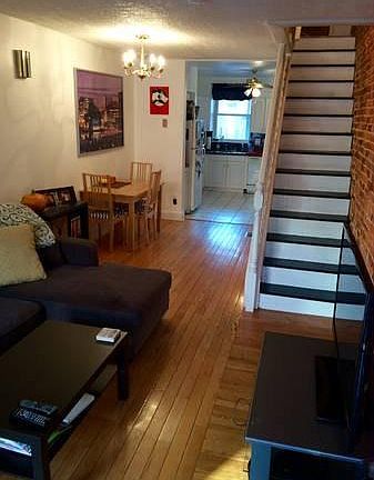 Charming 2 BR, 1 BA townhome in the heart of Canton. Central air, dishwasher, washer/dryer, hardwood and carpet floors. Bright interior, exposed brick, lots of closet and storage space and a decorative mantel. Large master bedroom comfortably fits king size bed. Private parking pad in rear. Convenient to Canton Square, Patterson Park and I-95. Pets accepted with additional security deposit.