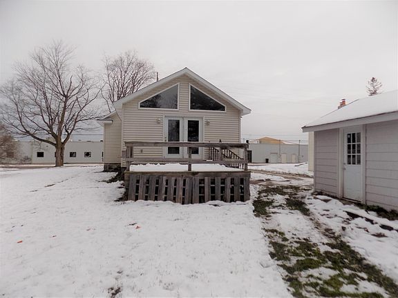 This darling two story home is conveniently situated near schools and the hospital. Hardwood floors throughout all three bedrooms and the large living room. The roomy kitchen flows into the dining area with cathedral ceiling, and a rear deck overlooks the big backyard. Plenty of storage with a full basement and 1+ car garage. Move in ready