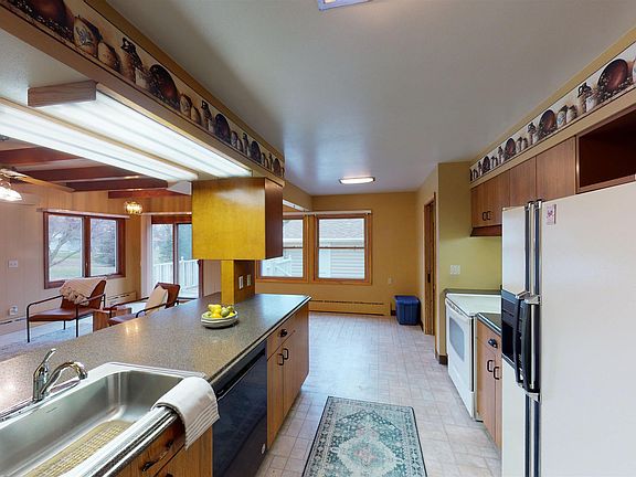 This beautiful, well maintained 3-bedroom (move in ready) ranch is just minutes from the golf course, rec center, swimming pool and city ball fields. This wonderful home offers everything you need on one level, including laundry. The property showcases an enclosed breezeway between the garage and house as well as a spacious living room with large windows. You'll love the layout of the kitchen which has a large island that opens into the dining room with patio doors leading to a deck and east facing concrete patio. This property features a sizable backyard which would be great for entertaining family and friends on a beautiful summer evening. Additionally, there is an attached oversized two stall garage as well as a storage shed in the backyard.