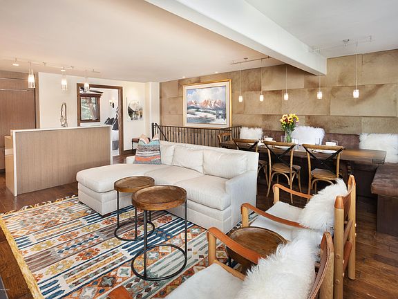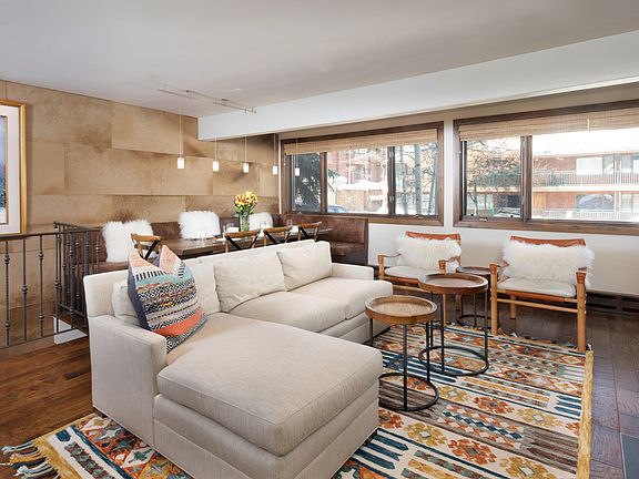 This gem at the ever popular Fasching Haus West is located within walking distance to Aspen's downtown shops, restaurants, culture and entertainment in addition to having some of the most convenient ski access to and from Aspen Mountain. The modern mountain styled two-level condominium lives like a townhouse with nobody above or below you. Enjoy the open main level floorplan with views of Ajax, plenty of light, new kitchen and fireplace. The master is also located on the main level with the two guest suites on the entry level. All three bedrooms have A/C and are ensuite. Full amenities include front desk, onsite property management and a heated pool and hot-tub which is just steps from your back door. Owners allowed pets.