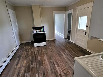 All fresh paint and new floor in this very spacious one bedroom apartment on the first floor. There is a shared yard with plenty of bushes and tree cover for privacy. There is a bonus room which can be used as a breakfast nook, office or even a walk in closet. On street parking available and washer hook ups. No smoking, no pets, on street parking only, tenants responsible for snow removal. Hook up for apartment size laundry only. Tenant pays for water, gas, electric Landlord pays trash and sewer