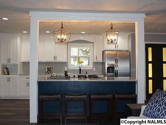 ALL NEW LOOK!!! Make plans to come see this beautifully renovated home located on Scenic Road with VIEW over downtown Fort Payne! Center entry with open living concept, laundry room and room for future expansion in the large basement area. Kitchen featuring all new white cabinets, granite countertops, island w/breakfast bar, and all appliances. Living area features a whitewashed stone fireplace w/gas logs. Dine with a view from the spacious new dining room overlooking the town. New master suite with sitting area, large walk-in closet, ceramic tile shower, double vanity and a view! Two additional bedrooms and 1 bath, attached single garage with space for more! MUST SEE!