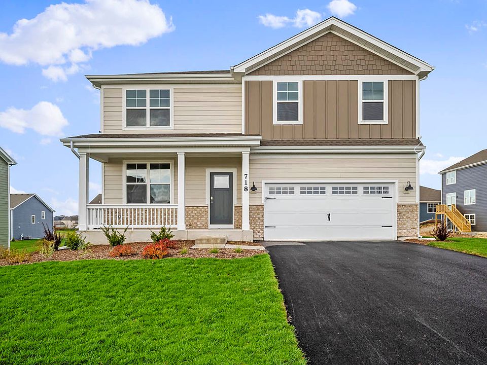 New construction in Elgin that is ready for move-in! The popular Henley is now available with a full walk-out basement! This home includes an upgraded elevation with brick accents, an East-facing front porch (enjoy the morning sun) 2 car garage, first floor den with glass French doors and 9' first-floor ceilings! On the inside, enjoy the full package of our new upgraded features, including 42" white cabinets with crown and soft-close, quartz countertops, and stainless-steel appliances. Luxury vinyl plank flooring thru-out the main level. An open concept living area and kitchen make entertaining easy! The garage access includes the perfect mudroom scenario - with a full walk-in closet and powder room. More luxury features continue upstairs with tiled floors and double bowl vanity in the hall bath. Even the laundry room includes tiled floors and is situated conveniently upstairs. Four bedrooms offer ample space for all! The primary bedroom is positioned nicely at the back of the home and includes a full bath with tiled floors, a seated shower with tiled walls and clear glass doors, and a raised double-bowl vanity. Second story loft is a great space to work or play! A full walk-out basement adds accessible living space and will be a favorite hang-out for all! All Homes include 9' first floor ceilings, Hardie Board Siding, full sod and landscaping, and a garage door opener on all double doors. Highland Woods is in the Burlington 301 School District with an elementary school on the property. Highland Woods is a lifestyle community offering a wide range of amenities, including 5 miles of walking paths; 7 parks and playgrounds; a fitness center; clubhouse; 25-meter lap pool, resort pool, water slide, and splash park; basketball and tennis courts; sand volleyball; and an 18-acre lake with open green space and picnic area. An onsite elementary school too! All Chicago homes include our America's Smart Home Technology which allows you to monitor and control your home from the comfort of your sofa or from 500 miles away and connects to your home with your smartphone, tablet or computer. Home life can be hands-free. It's never been easier to settle into new routine. Set the scene with your voice, from your phone, through the Qolsys panel which you can schedule it and forget it. Your home will always await you with your personalized settings. Our priority is to make sure you have the right smart home system to grow with you. Our homes speak to Bluetooth, Wi-Fi, Z-Wave and cellular devices so you can sync with almost any smart device. Builder Warranty 1-2-10. Exterior photo of actual home, interior photos of model home, actual home as built may vary.