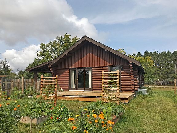 This in-town authentic Northwoods Log retreat is a one of kind! This log home features: an open floor plan, vaulted ceiling with large log beams, refurbished solid hardwood floors, kitchen with center island, completely remodeled 3/4 bath, along with other extensive improvements to the home making it move-in ready. The 1.8-acre lot is like living in the country with several specialty gardens with rare plants. The grounds and gardens are designed to help pollinators and wildlife! There are 2 city water/sewer hookups for future division of the lot.